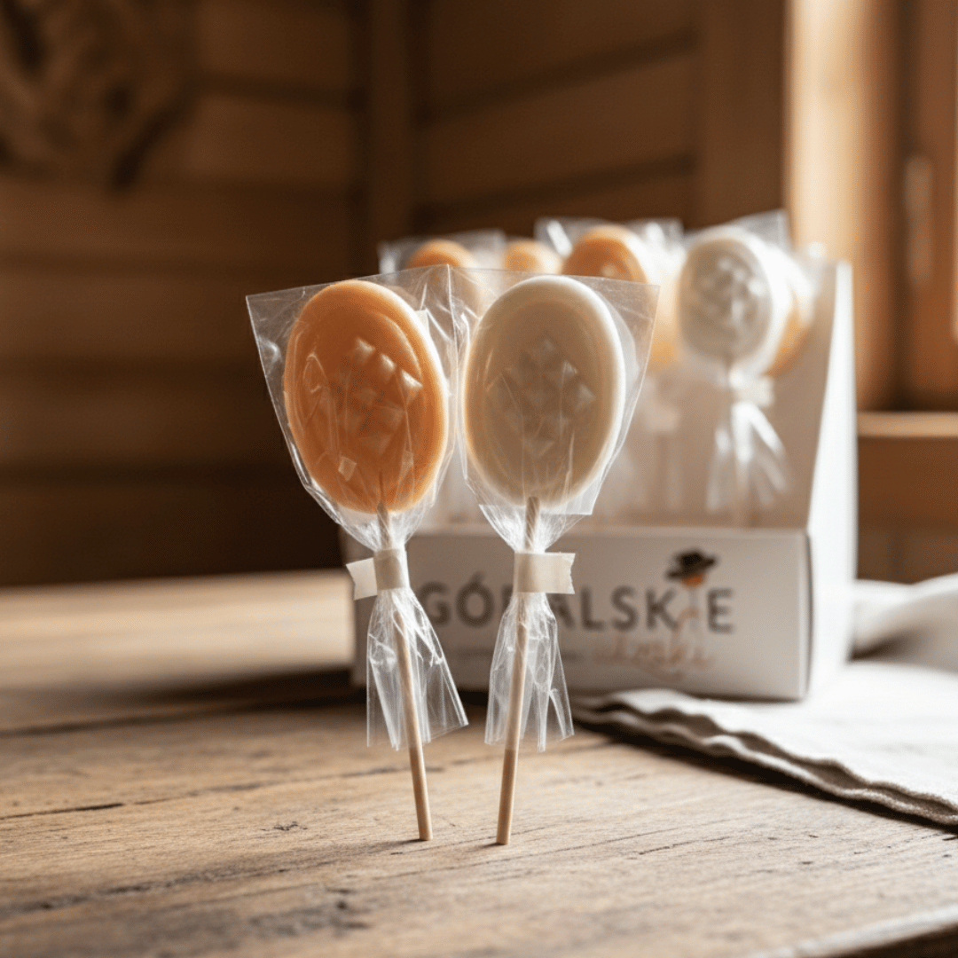 Nasze lizaki ser górski są wytwarzane z najwyższej jakości składników – naturalnych cukrów, aromatów owocowych i barwników spożywczych bezpiecznych dla dzieci. Kształt lizaka wiernie odwzorowuje tradycyjny ser górski – wydłużony, owalno-spiczasty, z charakterystycznymi wzorkami przypominającymi dekoracje na prawdziwym serze podhalańskim.